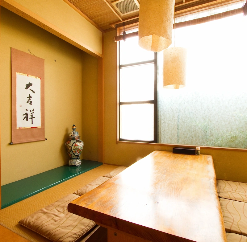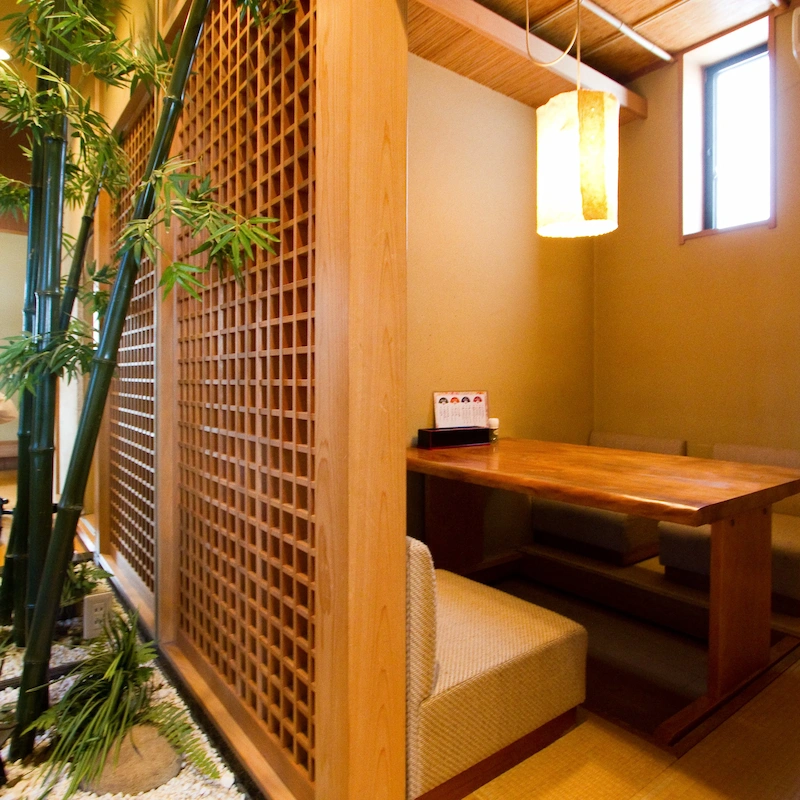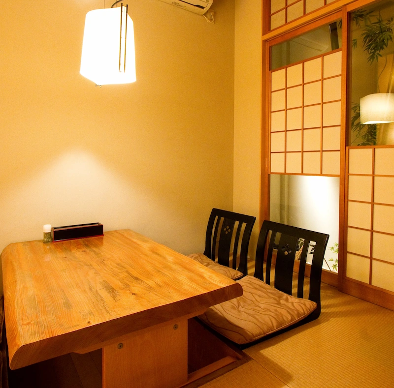 所有包廂均採用「掘りごたつ(下凹式暖桌)」設計,您可以舒展雙腿,享受悠閒放鬆的用餐時光。